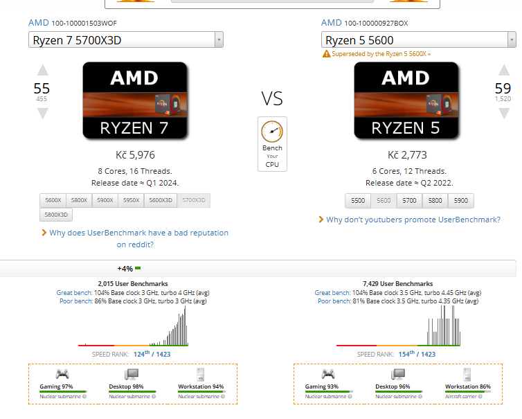 To srovnání jsou hausnumera. Reálně také záleží na tom, s jak výkonnou grafikou se ten procesor kombinuje, protože rozdíl se projevuje u těch silnějších, kde procesor hraje větší roli při jejím "krmení", u slabé může být rozdíl zanedbatelný: https://www.techspot.com/photos/article ... e-1440-png