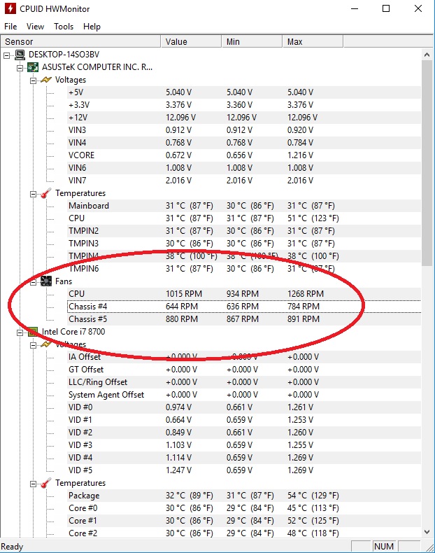Deska ti řídí každej ventilátor jinak. Nastav je v biosu stejně třeba na 500rpm.