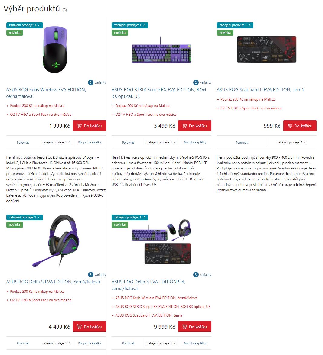 Možné již objednat limitku ROG Evangelion v podobě příslušenství. Buď jendoltivě a nebo jako výhodnější cenový balíček kompletmí herní přísluško (nemusí však pochopitelně nutně sloužit pro hry :) )