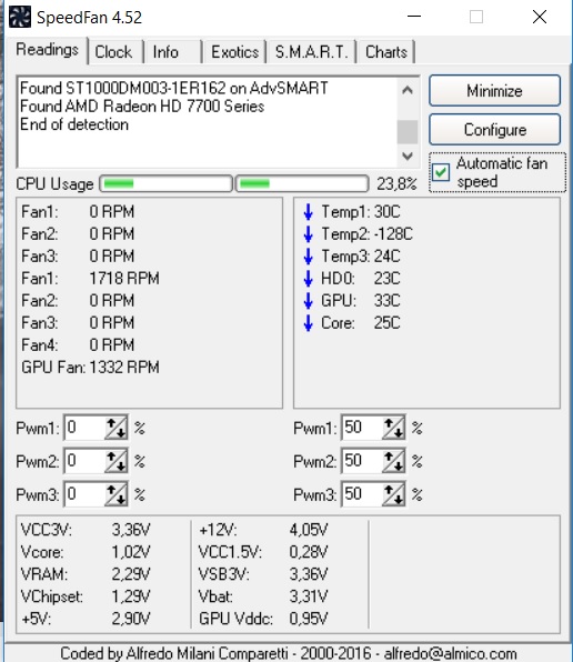 Speedfan neumí všechny desky správně monitorovat a musíš si ho vyladit a neni to na 5 minut. Pokud náhodou ukazuje dobře teploty, tak jsou naprosto minimální a nic se nepřehřívá, ale základ je jít do biosu, protože ten je napsaný tak, aby si rozuměl s monitorovacím čipem přímo na své desce. Takže běž do biosu a opiš hodnoty z monitoringu tam. Teploty + napětí. Nebo udělej screeny pokud to umíš. Pokud počítač běží, tak můžeš vysledovat vytížení pamětí a CPU při nějaké té činnosti, kdy se ti zdá PC pomalé.