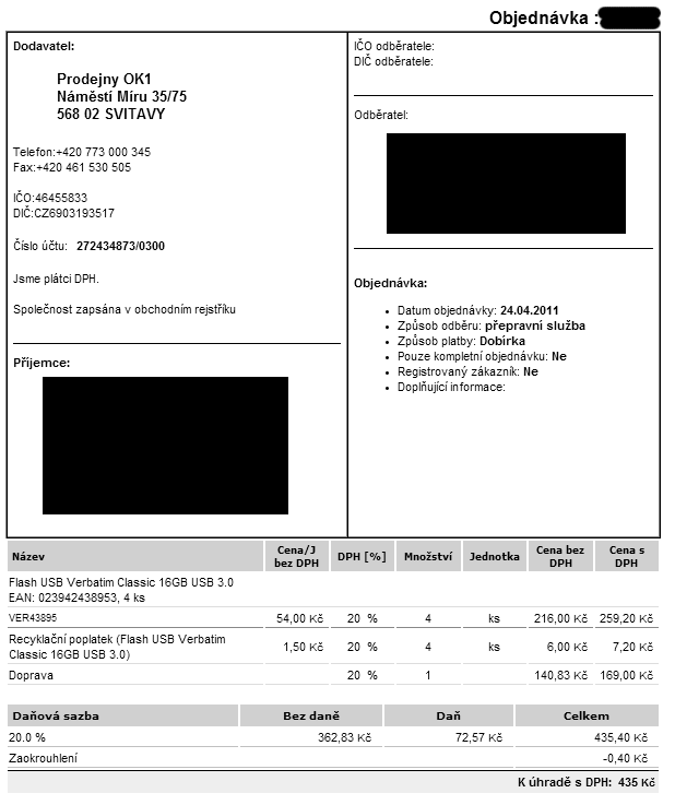 V případě, že dojde ke změně objednávky a výsledná hodnota objednávky bude po provedení změny vyšší, bude Vám dán k úhradě rozdíl těchto částek a zboží zasláno po obdržení doplatku