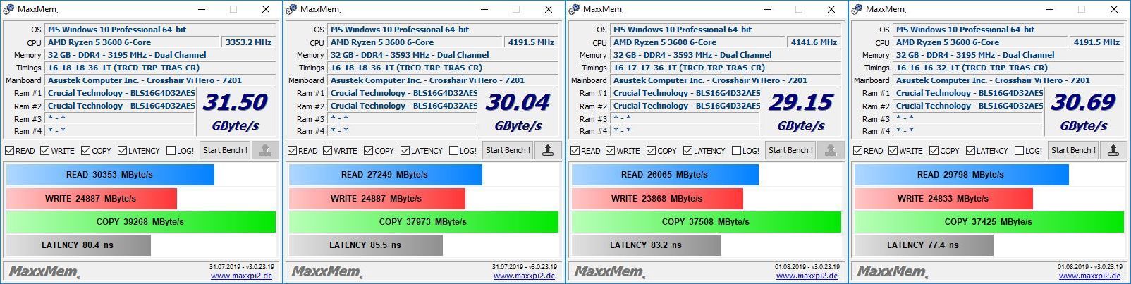 taxem si zkoušel trochu pohrát s časovánim pamětí, ale na 3600 mě to níž jak 16-17-17-36 nepustilo přes post, další zkouška byla na 3200 a 16-16-16-32 - tak nevim, ale možná to poslední bude to nejrozumnější...