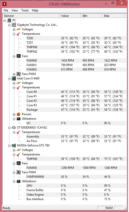 Jinak Vstrome, ty tvé teploty jsou naprosto OK, CPU má maximum nějakých 105°C, ale měl bys ho držet do nějakých 70°C bez OC (tvých 60°C je OK) a 75°C na grafice je také OK. A ty čidla v Tempetarures, první dvě budou nejspíš nezapojená (teplota se nijak nemění) a ty další dvě jdou také OK (dalo by se nejspíš přesně dohledat (možná to bude v BIOSu), co to je, ale dle teplot to bude tak chipset nebo něco podobného, VRAM a podobně to nebude, tam by byli větší rozdíly v klidu a v zátěži), akorát TmPin0 se mění docela pravidelně...