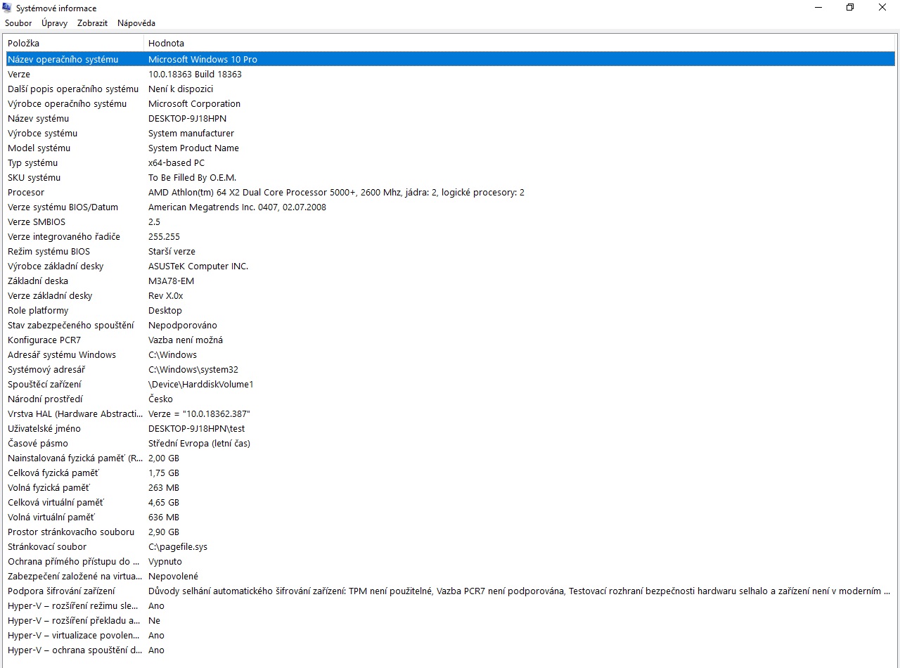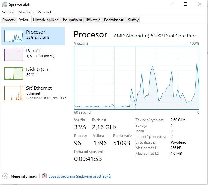 chtěl bych upgradovat starší PC ze současných win XP na win 10. V tuto chvíli píšu přímo ze zmíňovaného počítače, do kterého jsem na jiný disk nainstaloval Win 10, nemám ho tedy v provozu s reálnými daty. Chod systému se zdá být plynulý, občas má ale drobné záseky (pravděpodobně kvůli 2 GB RAM), ale přesto bych uvažoval o upgradu některých komponentů. Určitě bych systém nahrál na nějaký SSD disk, uvažuji o tomto a pak přikoupil napřžíklad tyto RAM (základovka by měla podporovat DDR2). Mělo by to pro plynulý chod systému (MS Office, Facebook, YouTube) stačit nebo byste mi doporučili upgradovat i něco dalšího? Chtěl bych to mít co nejvíce lowcost (ideálně vše do 3k). V příloze je výkon ze správce úloh a přehled systémových informací.