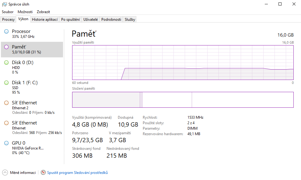 Když koukneš na RAM ve správci úloh, ukazuje těch 3200, respektive 1600?