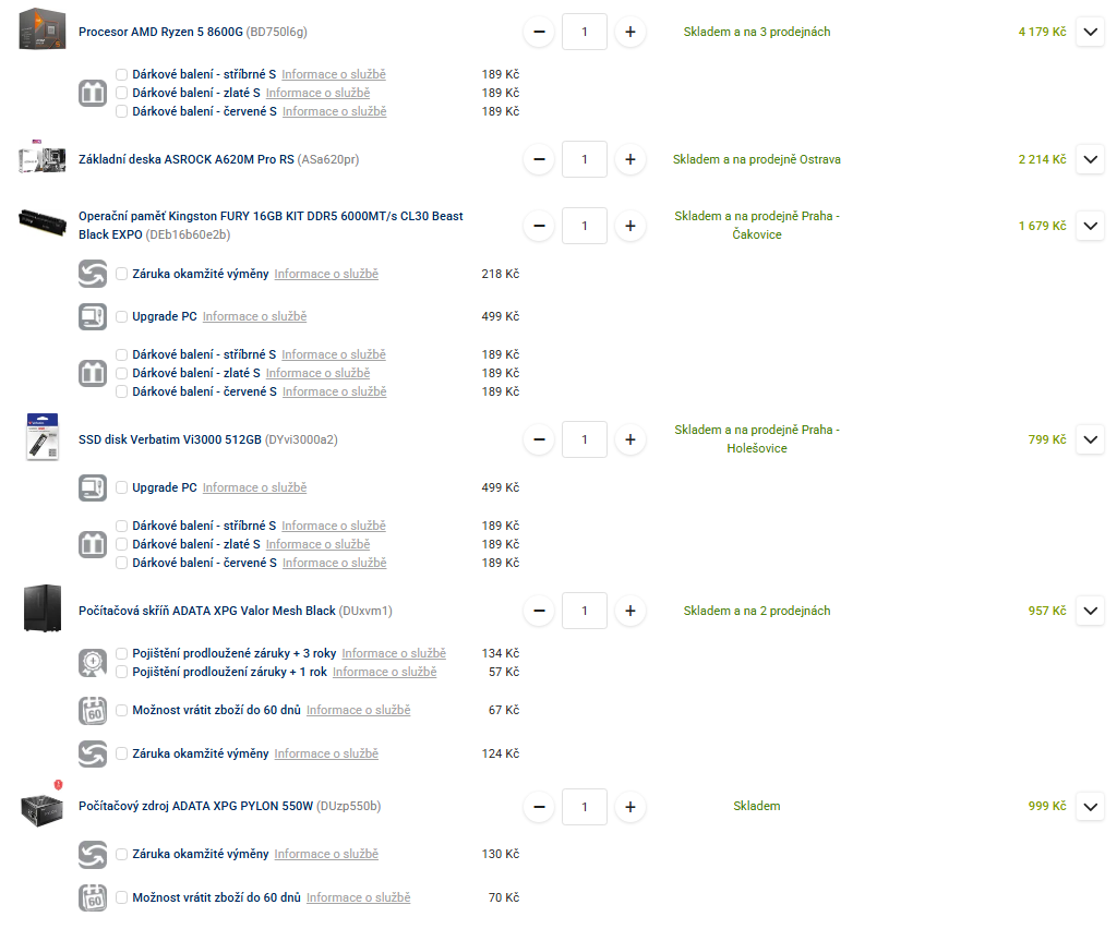 Chtěl bych kvalitní součástky, co dlouho vydrží, ale není to herní pc; takže hledám dobrý poměr cena výkon.