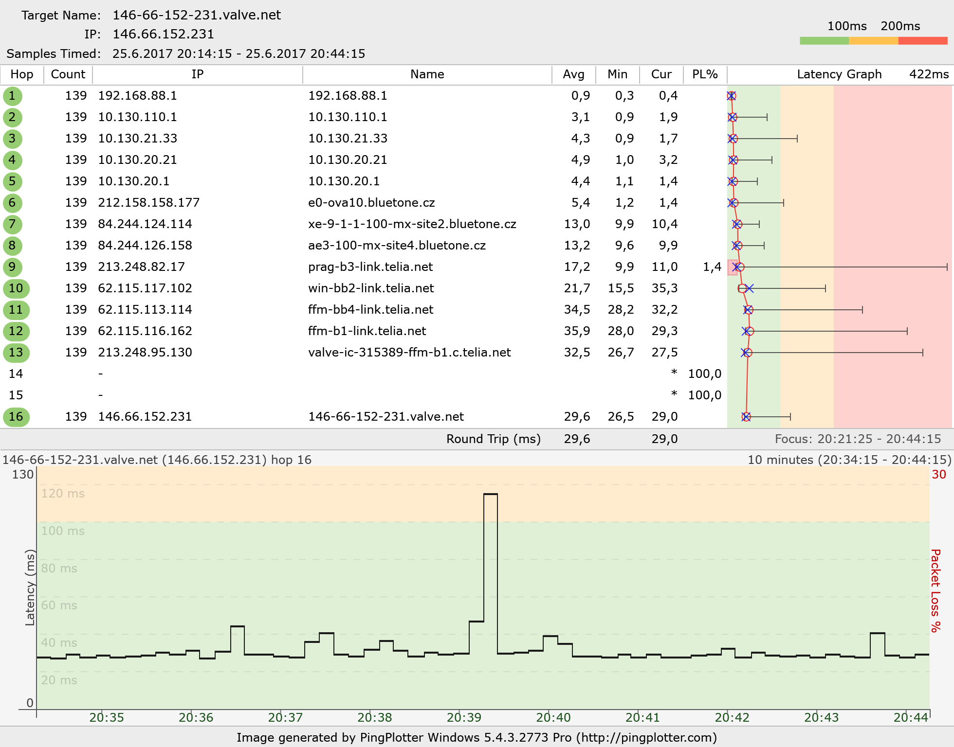 V mém podpisu najdeš návod na diagnostiku sítě. Budu potřebovat screen pingplotter, který vložíš sem.
