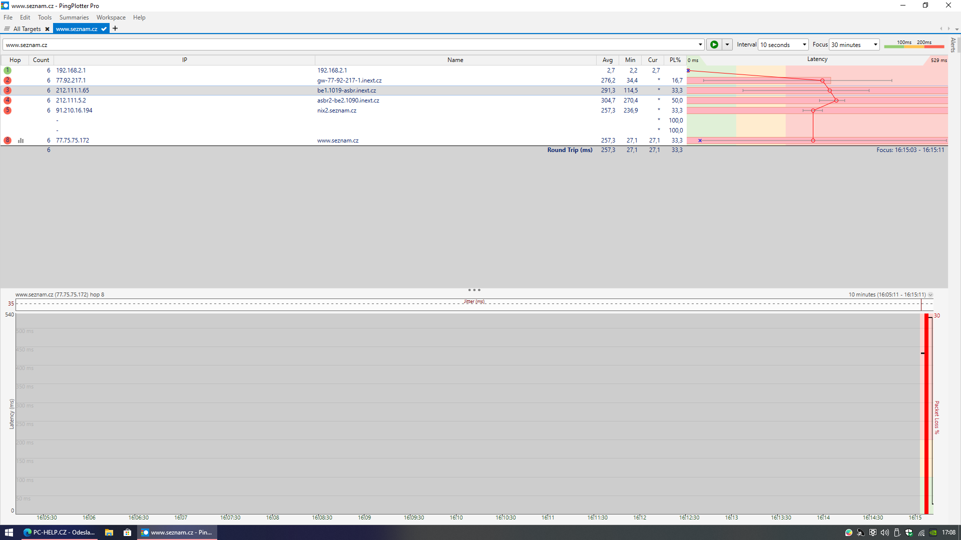 Před 2 dny mi při hraní pc her začal skákat ping, někdy i na 1000ms. K internetu jsem připojený pomocí wifi adaptéru od tp-link(TP-LINK TL-WN725N). Přikládám screen z pingplotteru.