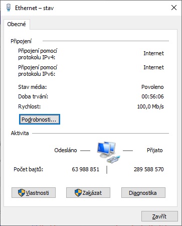 2. Koupíš si dostatečně dlouhý kabel, opět Cat5e, nebo vyšší, natáhneš ho od routeru k počítači a podíváš se na stav ethernetu.