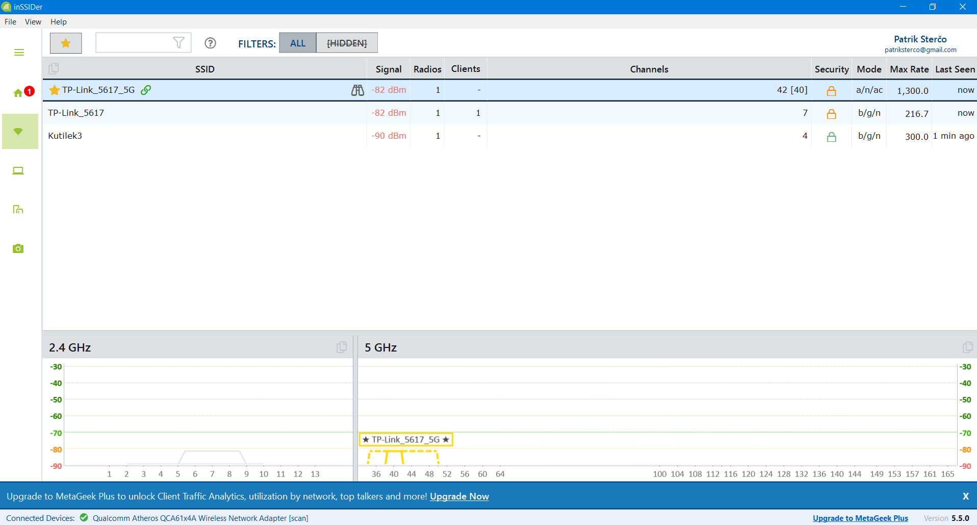 Description . . . . . . . . . . . : Qualcomm Atheros QCA61x4A Wireless Network Adapter