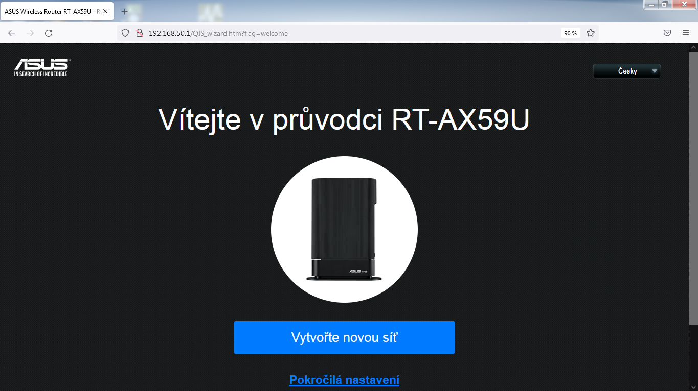 Nastavení - po zapnutí routeru stačí spustit prohlížeč a zadat adresu router.asus.com, popřípadě výchozí IP adresu 192.168.50.1. Uvítá vás průvodce nastavením.