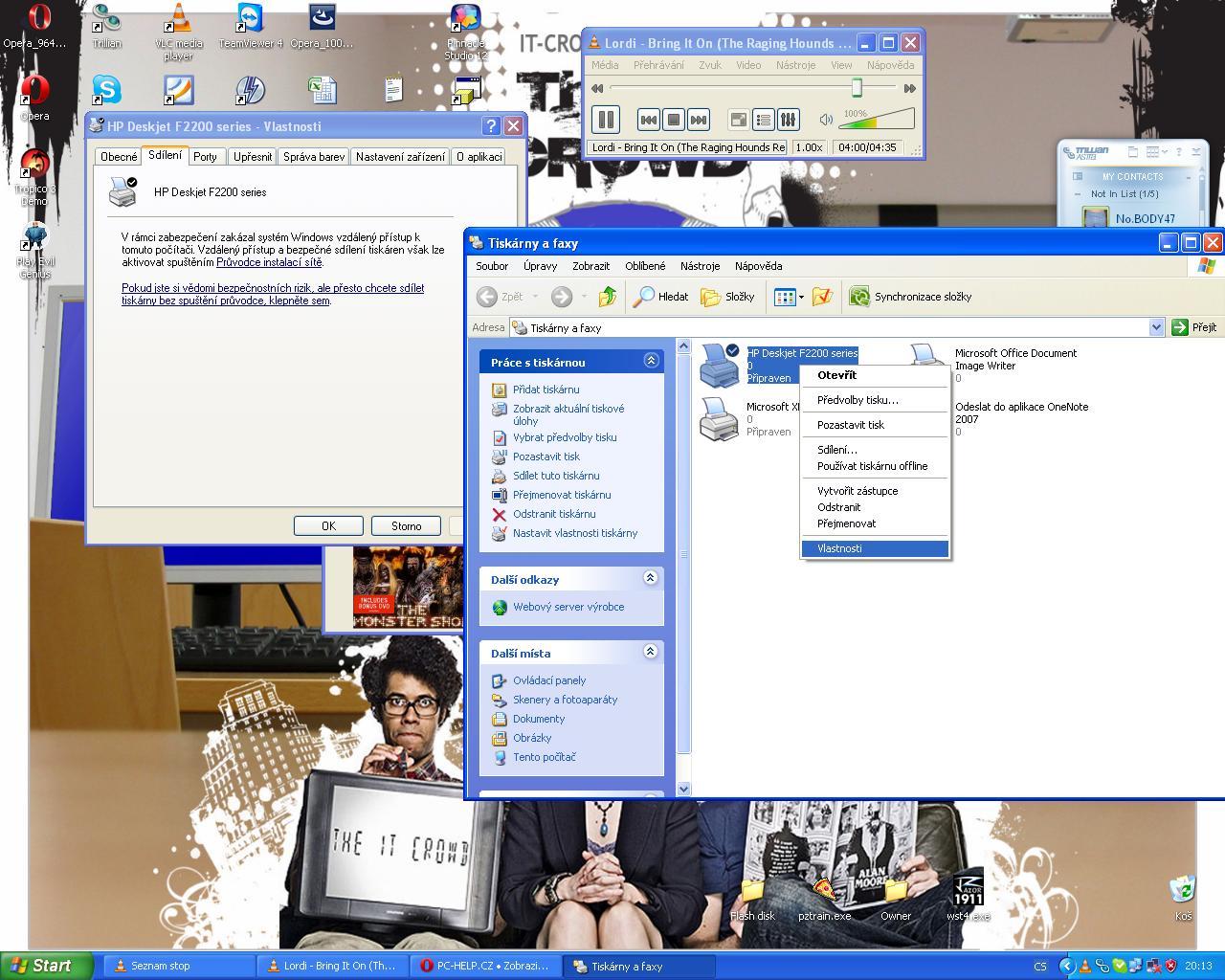 Ahoj, na jednom počítači mam OS: Windows XP a tiskarna je k nemu pripojena pomocí USB, druhy pocitac (notebook) ma OS: Windows Vista premium a chtel bych z neho tisknout.
