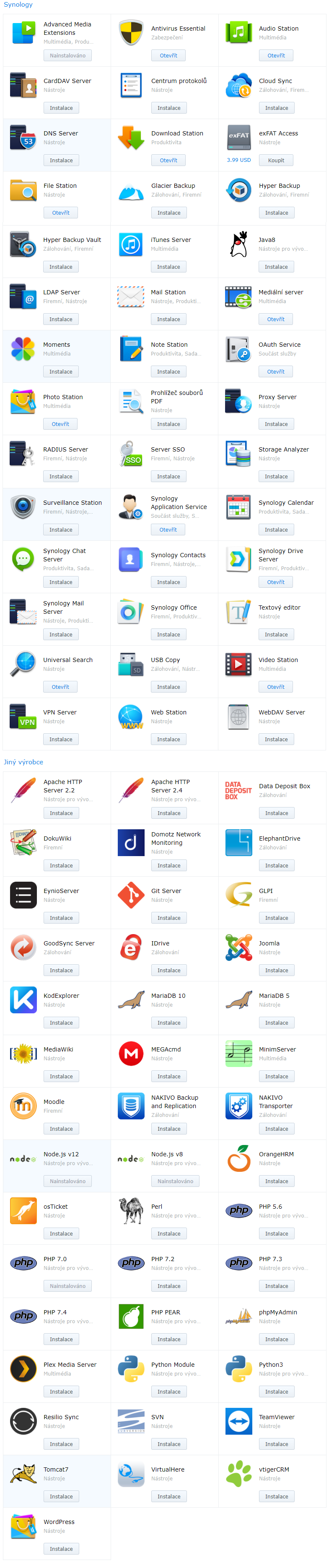 A na + modely od Synology jde toto (porovnávat se mi to nechce, u 3. části jsou některé řádky duplikováni, protože už 3. část neobsahuje tolik aplikací):