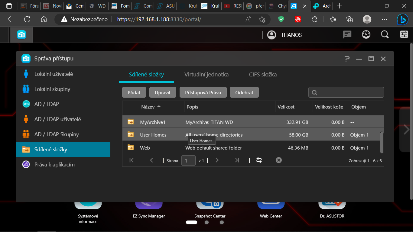 Dále - sdílené složky v asustoru - nemáš u nich zapnuté šifrování? Pokud ano, zkus ho vypnout.