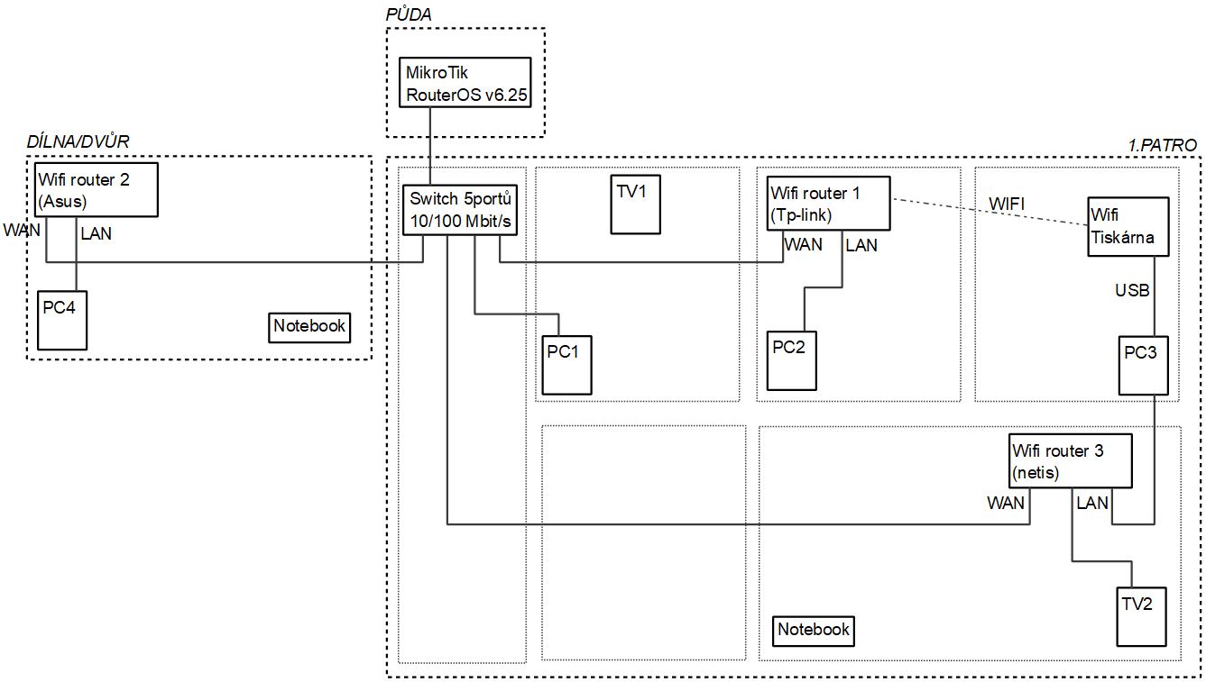 chci se zeptat jestli u takto sestavené sítě jde všechny pc a notebooky zařadit do jedné domácí skupiny(na každém zařízení jsou WINDOWS 10).Problém je, že mi routry vždy změní IP adresu. Potom bych se chtěl zeptat jestli jde udělat, aby šlo z PC1 a PC4 tisknout pomocí wifi a jak :D. PC2 je připojen přímo k routru 1, a proto mi tisknou šlo, PC3 tiskne pomocí USB kabelu. Chtěl bych, totiž dosáhnout toho, že PC3 nebude muset být při tisku jiných PC/notebooků puštěný.