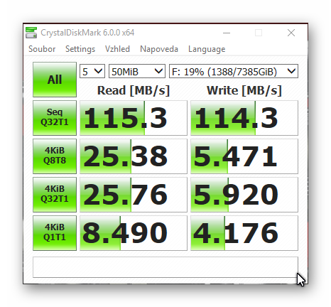 Fajn, díky za názor, co se týče sítí, nijak extra se v nich neorientuji, vypadá to na nedostačující kabeláž...dom324 píše:100Mb/s = 12,5MB/s.sojkin626 píše:Napadla mě kabeláž, ale máme internetové připojení 100/50Mb/s a bez problému dosahujeme plné rychlosti.
