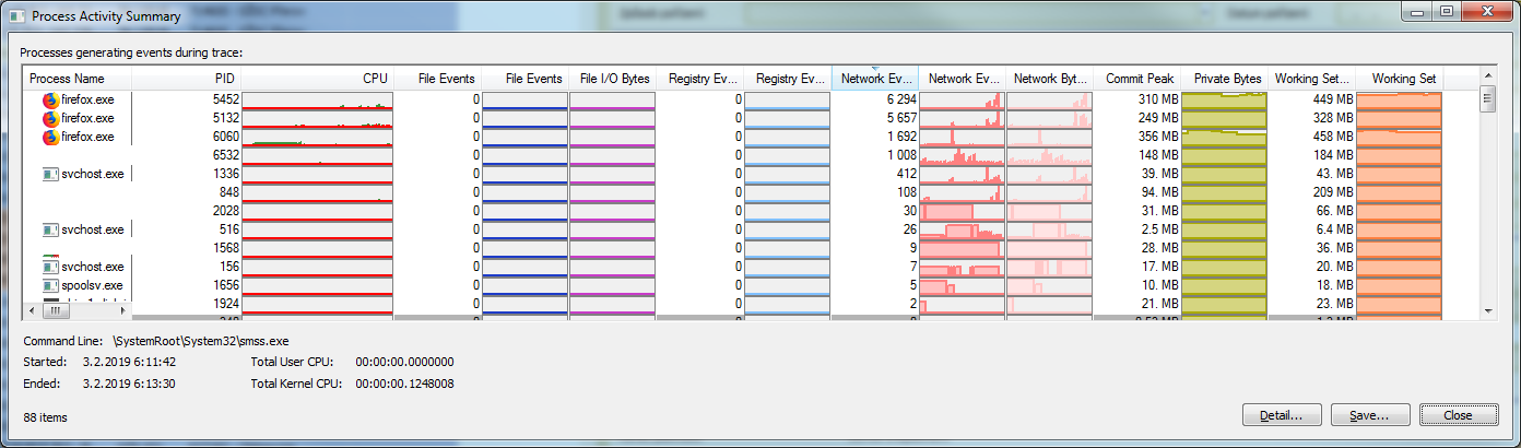 Postup stejný, jen místo Network Summary vybereš Process Activity Summary. Mělo by to vypadat nějak takto: