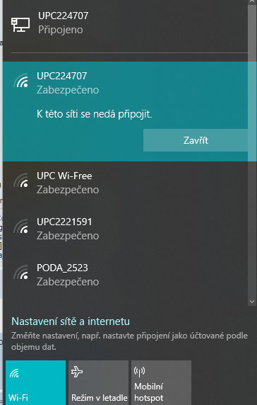 mám problém se sítí. Vždy když se chci připojit na Wi-fi tak mi vyskočí, že nelze připojit k síti. Zkoušel jsem to i s jinými Wifinami ale nikde se nepřipojí. Dosahem sítě to není. Přes kabel normálně jede. Můj notebook je HP 250 G3. Připojuji se přes Ralink RT3290 802.11bgn Wi-Fi Adapter #2. Díky za odpovědi