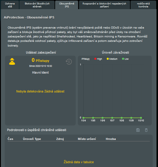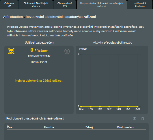 Pokud ochranu aktivujete, dostanete se i k přehledu případných útoků.
