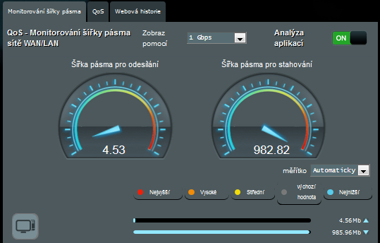 A poslední, co zde stojí za zmínku je monitor šířky pásma, který ukazuje aktuální rychlost v reálném čase.
