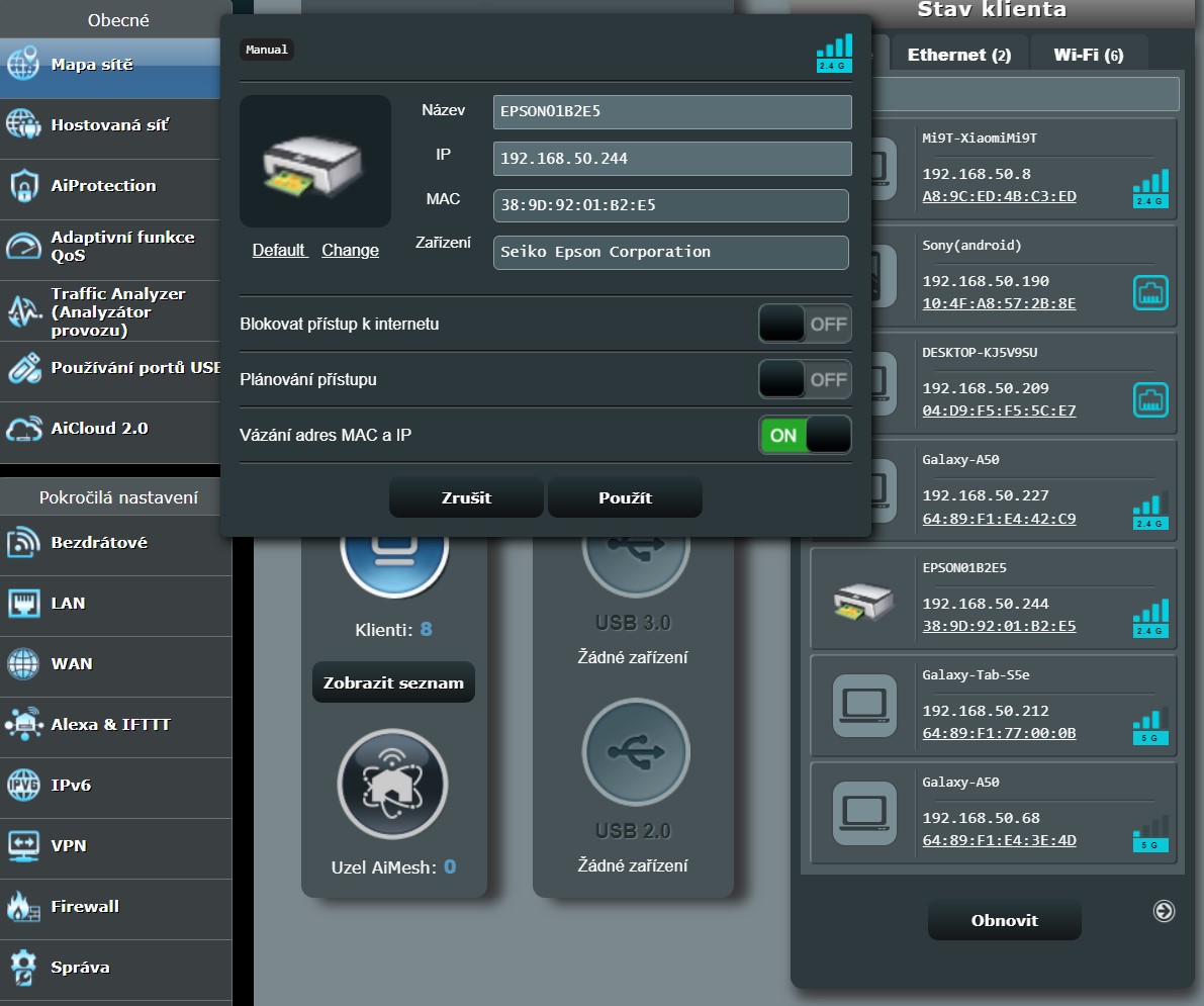 Mám dotaz, neustále se mi odpojuje tiskárna Epson od wifi. Někde jsem četl, že pomůže zadání statické IP adresy. Pokud zapnu poslední položku na ON, znamená to statická IP adresa?