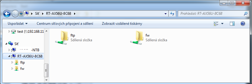 Po rozkliknutí sítě v průzkumníku windows to vypadá takto: