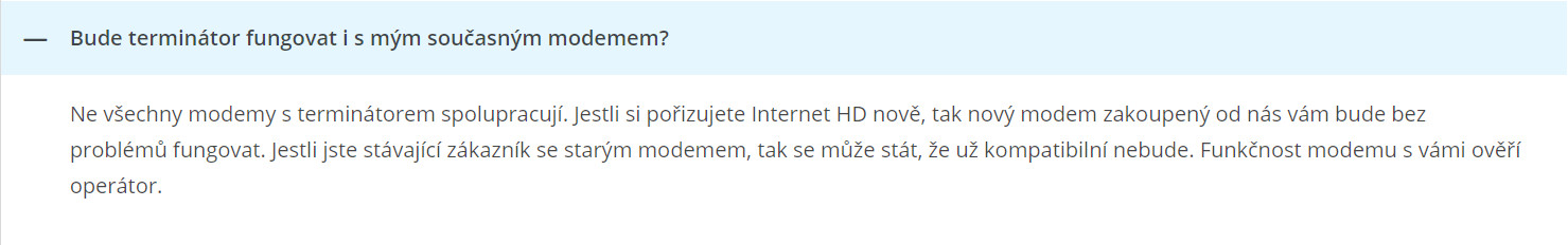 Cituji ''Terminátor bude zakončen konektorem RJ-45, což je standardní ethernetový konektor používaný napříč technologiemi připojení, do kterého bude možné zapojit vlastní router pro připojení všech zařízení v domácnosti zákazníka.''