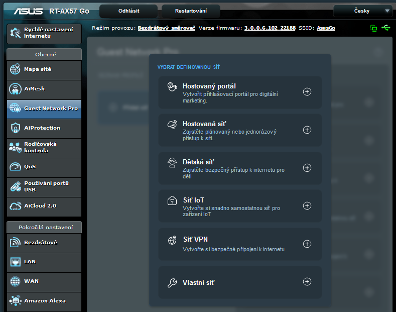 Portál, síť pro hosty, síť pro děti, síť pro internet věcí (IoT), bezpečné připojení k internetu přes VPN, a pokud by ani tohle nestačilo, můžete si vytvořit svou vlastní. Tohle opět chválím, občas se objevují zprávičky o průnicích do sítě prostřednictví IoT, což je v případě připojení zařízení přes hostovanou síť nemožné. vytvořené sítě mají další nastavení, např. otevřená/chráněná, doba provozu atd.