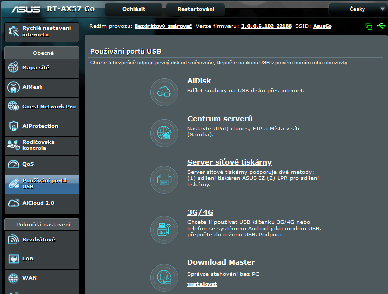- AiDisk - vytvoříte si svůj vlastní cloud a tak se dostanete ke svým souborů z jakéhokoli zařízení připojeném k internetu