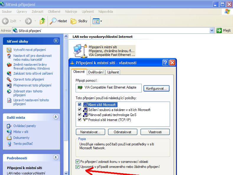 //předpokládám, že ovladače síťové karty jsou nainstalované?!