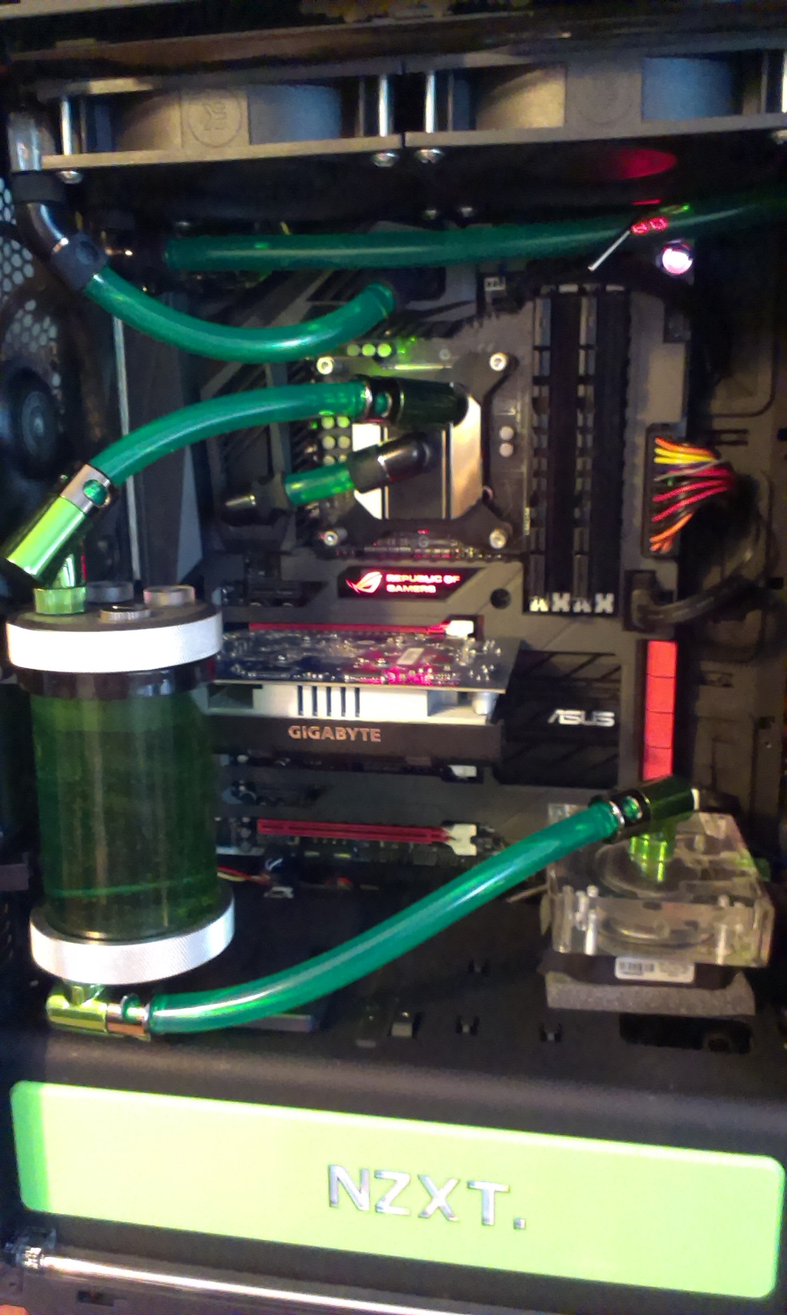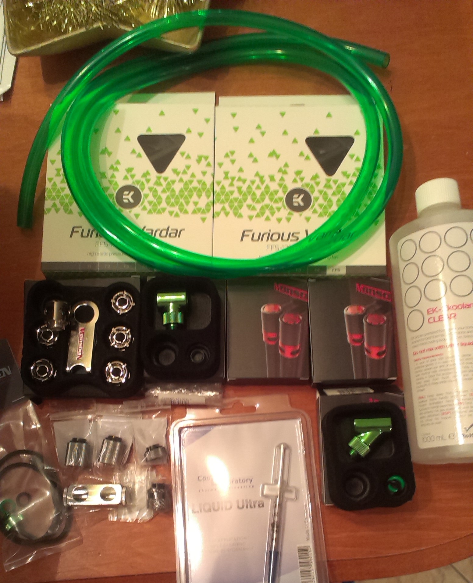 Přidán přední 360mm radiátor, na něm 3x EK Vardar a za ním na pull 2 původní 120ky (zatím).