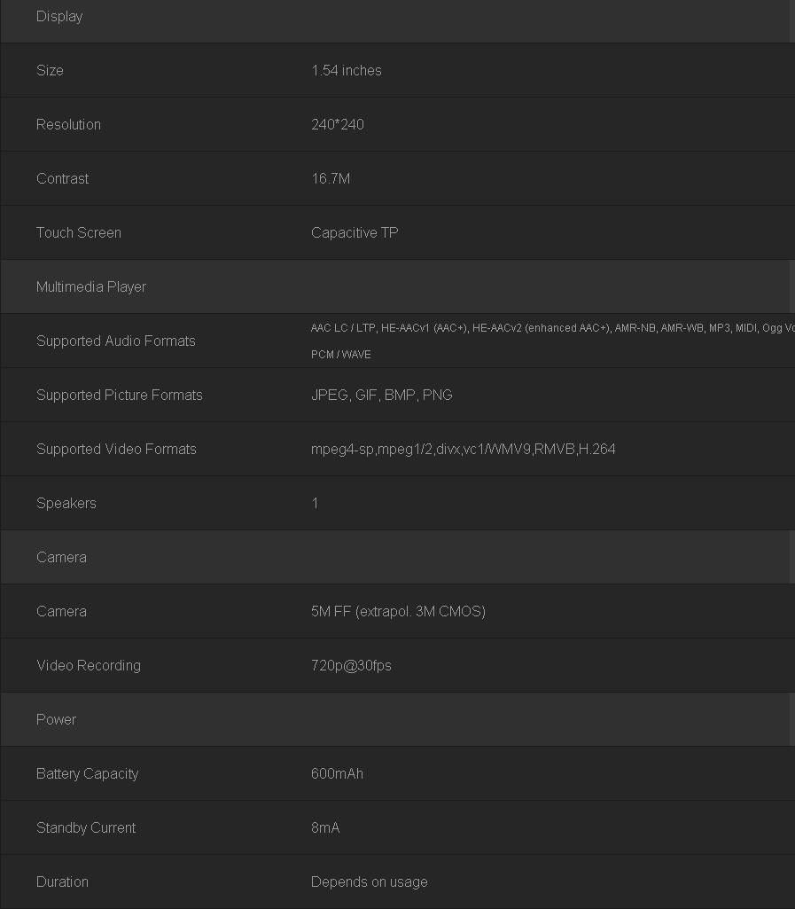 Revoluční hodinky, které v sobě ukrývají telefon. Používejte hodinky jako smartphone! S Omate TrueSmarch 2.0 to není žádný problém. Obsahují obvyklé vybavení chytrého telefonu jako je rychlý procesor, 5MPx fotoaparát, nebo systém Android 4.2. Můžete jej tedy využívat jako svůj telefon pro volání či posílání SMS. Paměť hodinek je 4GB a lze jej rozšířit pomocí microSD karet. Do hodinek se vkládá SIM karta stejně jako do telefonu. Hodinky jsou také odolné proti vodě (ne vodotěsné) s certifikací IP67. Hodinky běží na systému Android, ale kvůli malému rozlišení dipleje nelze do nich nainstalovat většinu současných aplikací z Google Play.