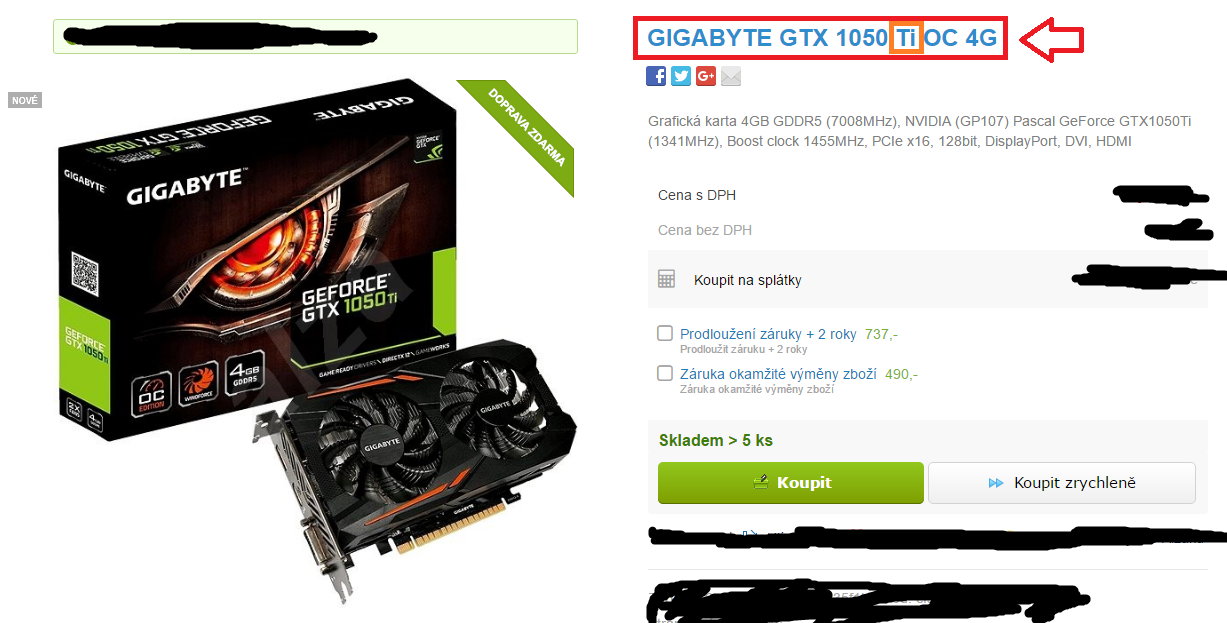 U jiných karet (1050Ti) je normálně napsáno NVIDIA Geforce GTX 1050Ti, takže si myslím, že jde jen o chybu. Díky.