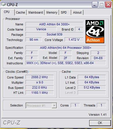 Takže máš Athlon 3000+ pro socket 939,desku Gigabyte s čipovou sadou nForce4,paměti DDR.