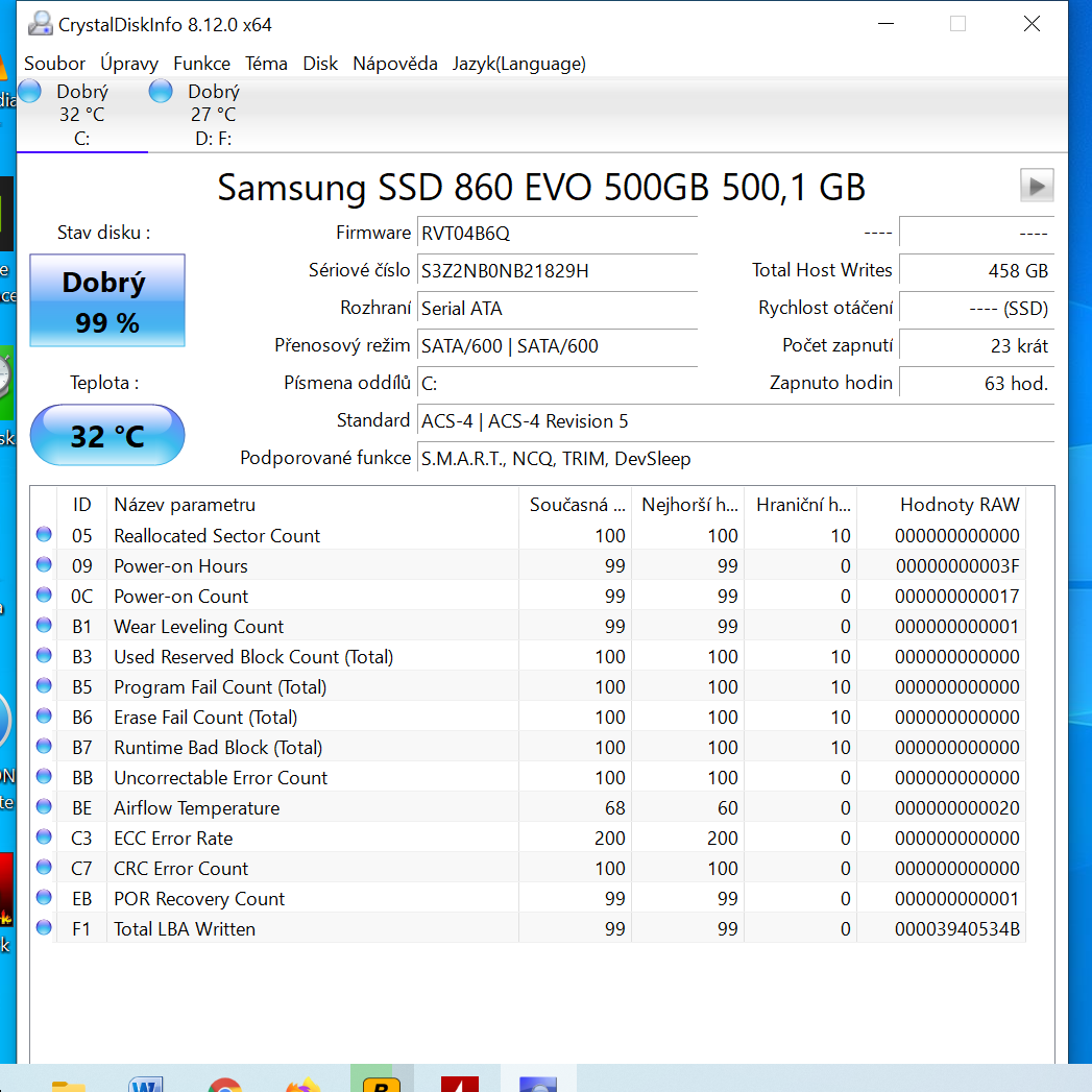 Ahoj, mám 14 dní disk Samsung SSD 860 EVO 500GB a dnes jsem si všimnul, že v programu CDI mi ukazuje stav dobrý 99% a to nemá ani 500GB zápisu a náběh celkem 63 hodin. Je to normální? Co jsem tak googlil, tak jiné disky mají zápis třeba desítky tera a stav pořád 100%. Díky