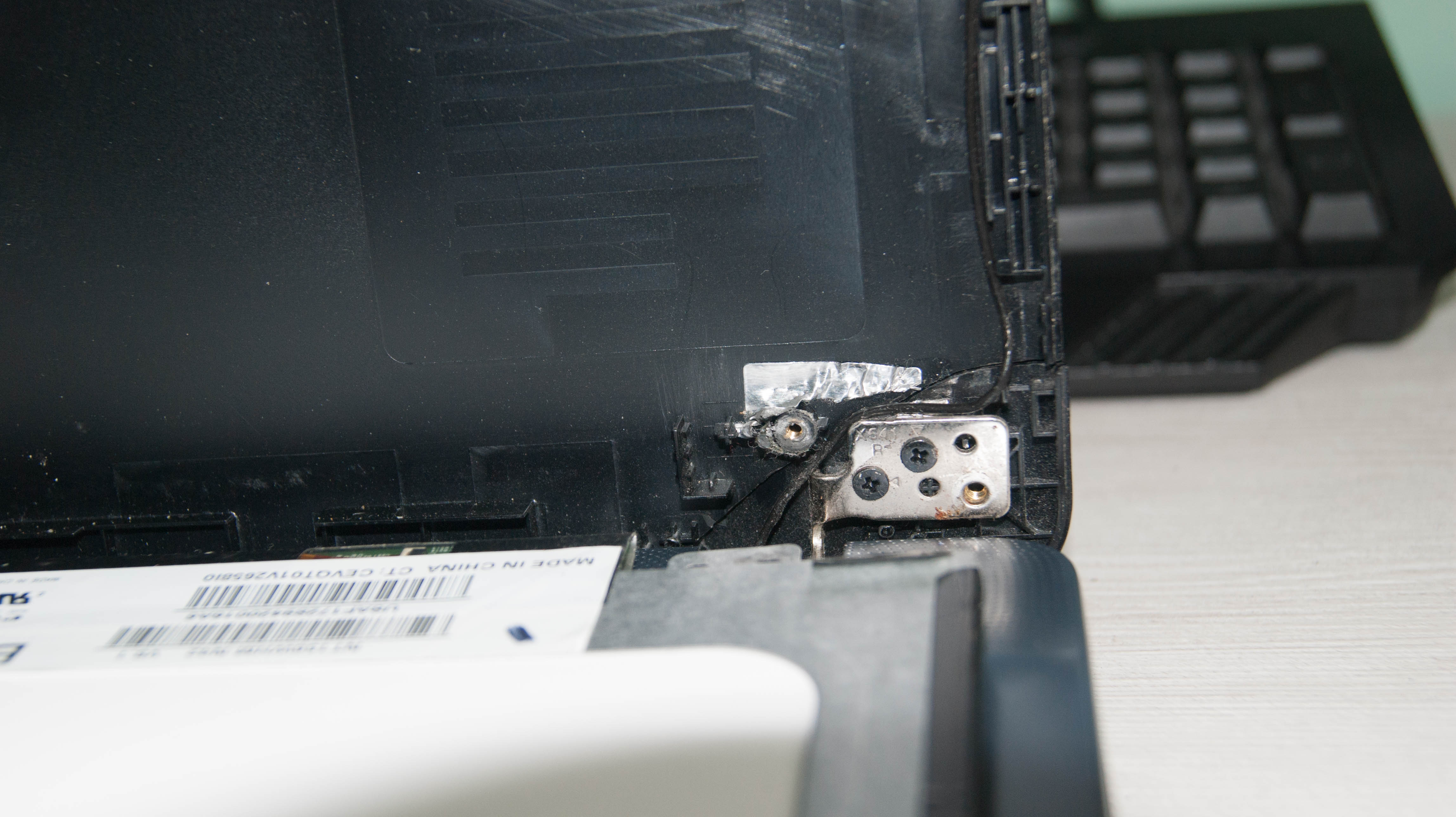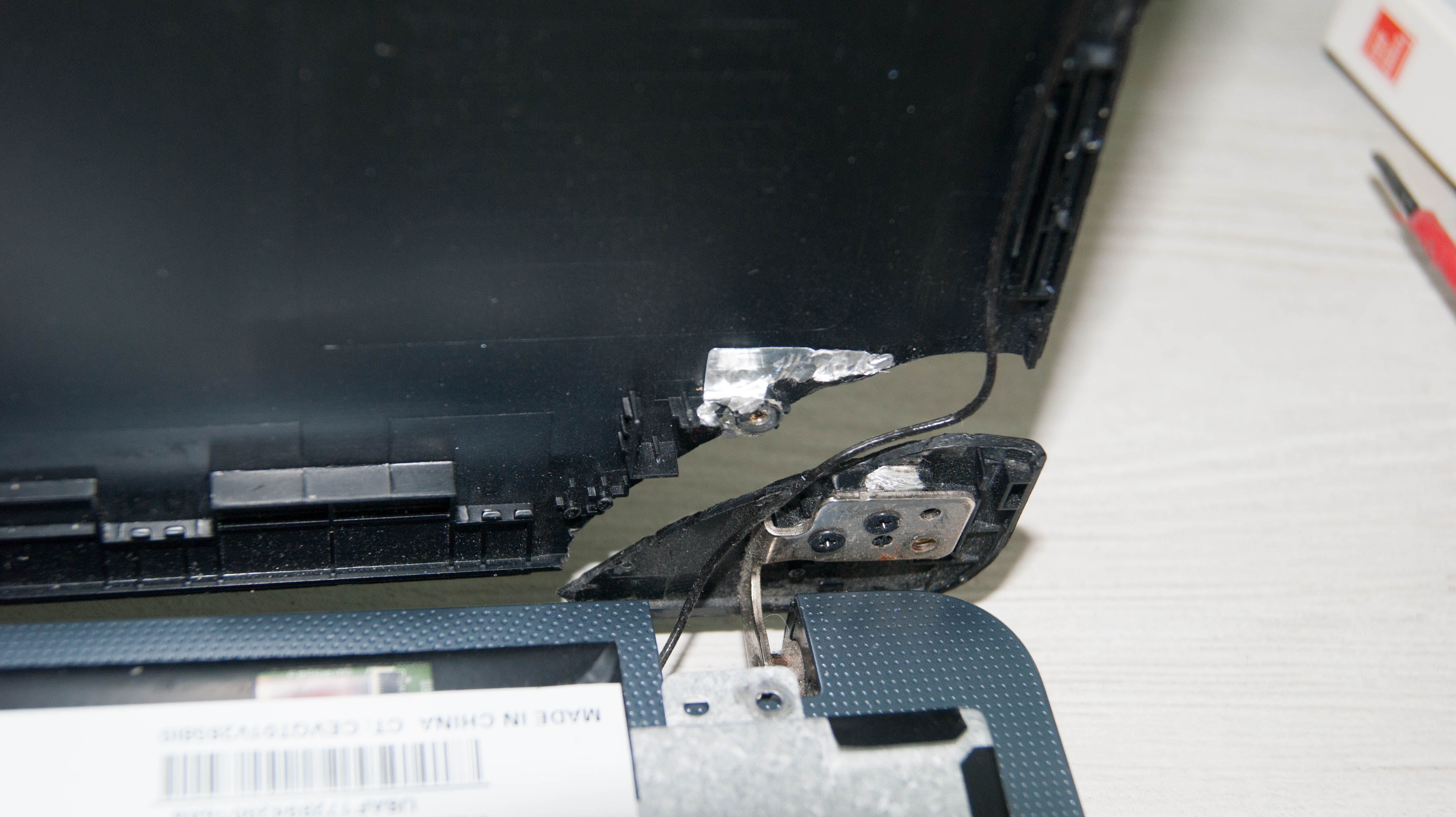 no problém, ktorý neviem ako vyriešim je, že na ntb je odtrhnutý roh, presne v mieste kde sú pánty.