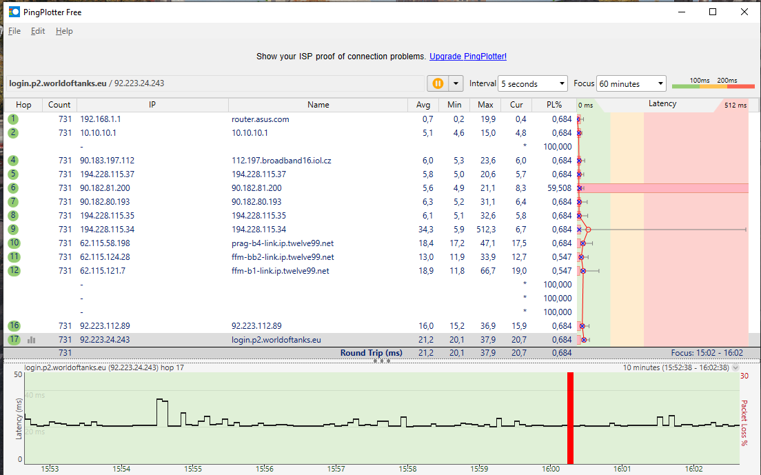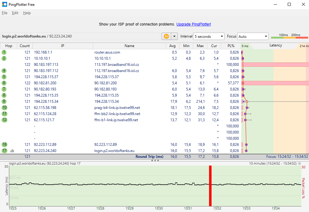 PS: výpadky nejsou jen na hře ale třeba i FB ukazje že jsem se odpojil na chvilku (2-5s cca)