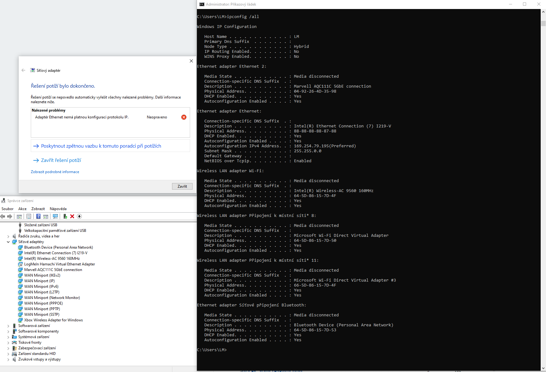 Ráno nefungoval jenom tento PC s problémem s MAC, tak uvidíme, co se stane teď, pokud nejsou další kroky.