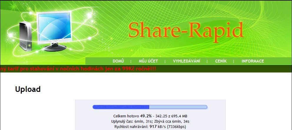 EDIT: screeny ze stahování a nahrávání sem dělal ve 22:00 cca takže v době kdy je server pořád ještě vytížený