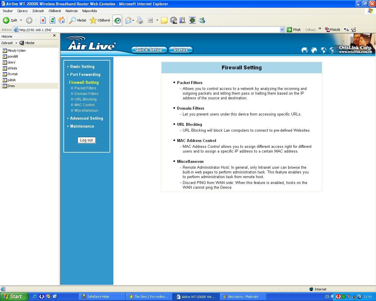 Vůbec nevim jak nastavit porty a kde.. posílám pár printscreenů obrazovky s nastavením routeru.. jelikož nevim co a kam vyplnit.. router má zároveň i svůj firewall, ale tam taky nevim, jestli něco povolovat, nebo nastavovat..