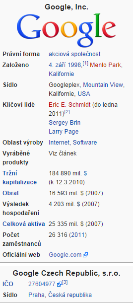 Podrobnější informace naleznete v článku Google (vyhledávač).