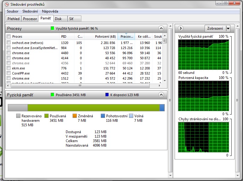 Zdravím. Po čisté instalaci WIN 7 64bit a následném nainstalování programů mi něco hodně vytěžuje procesor a paměť. Podotýkám, že ještě nejsou nainstalované aktualizace systému. Dá se prosím nějak poznat, k čemu ten proces patří (je to svchost (netsvcs))? Mám podezření na Google Chrome, přijde mi, že se objeví když spustím Chrome. Odpoledne ho odinstaluju a uvidím. Ale kdyby zatím někdo poradil, jak zjistit, k čemu to patří, byl bych vděčný.[attachment=0]nový-1.jpg[/attachment]