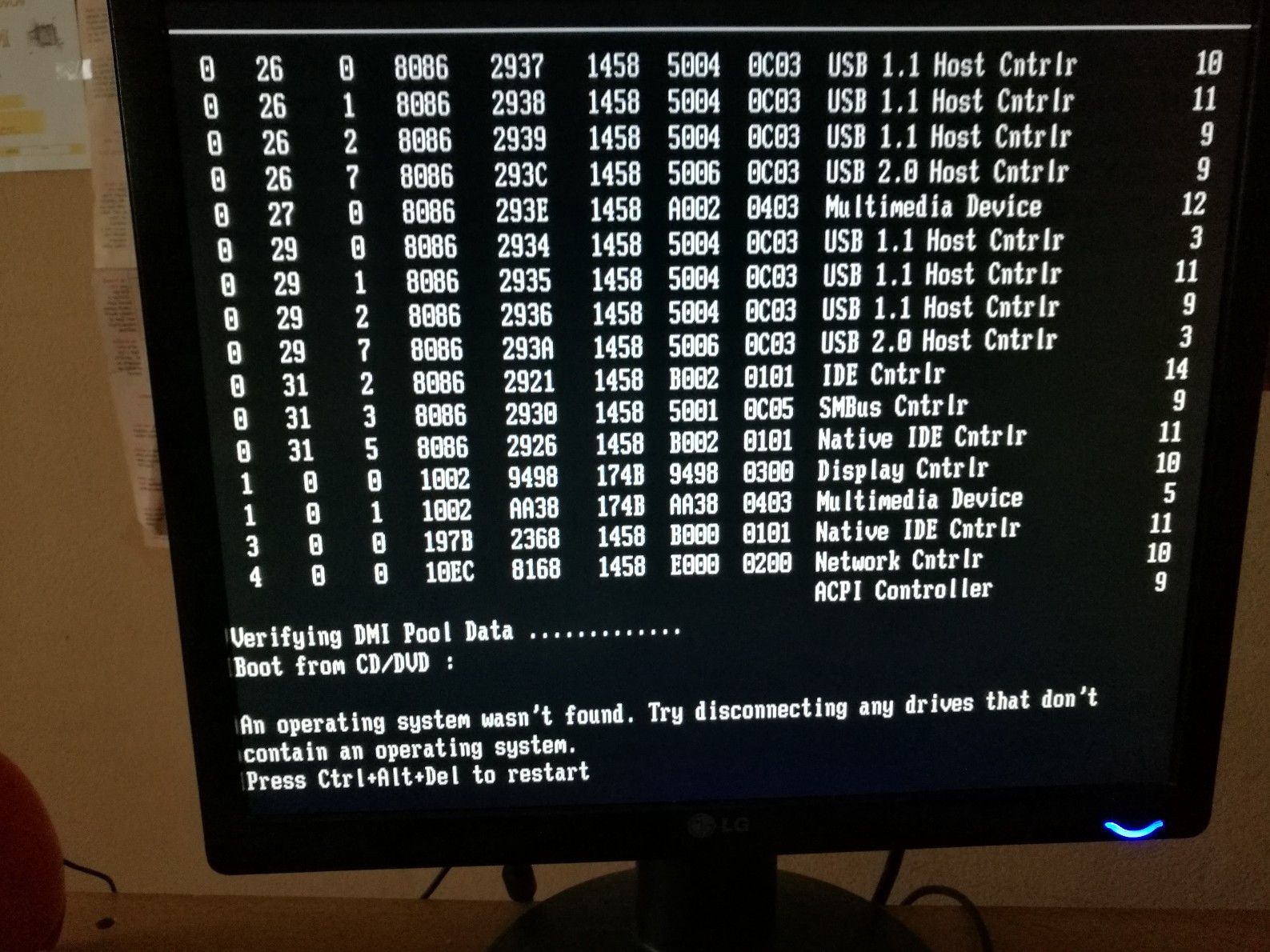Zdravim. Tak jsem HDD připojil na notebook přes krabici, kde jsem měl externí HDD, zkontroloval a HDD je v pořádku, ale raději jsem ho zformátoval, takže je čistý. V biosu jsem nastavil bootování přes USB a při restartu PC se soubory z flash karty načítali, ale v půlce to vyhodilo nějakou chybu.