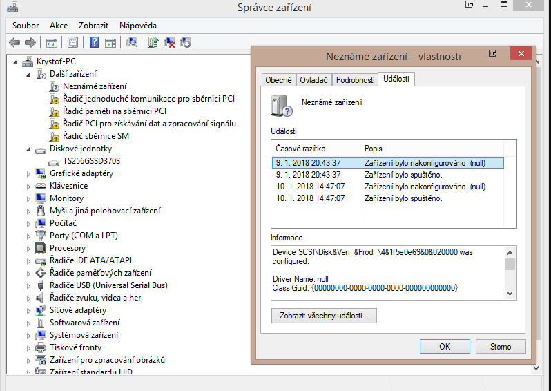 Myslim si že to neznámé zařízení bude ten HDD protože ten čas v tech událostech by přesně seděl na to kdy mi přestal fungovat.