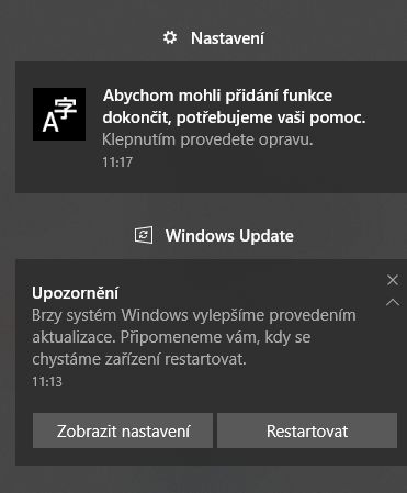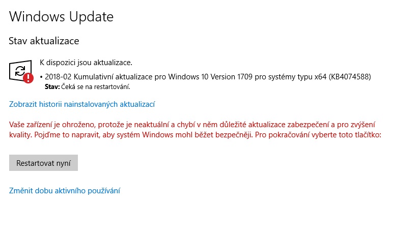 1. Stále se to snaží instalovat aktualizaci KB4074588 (patrně si ji to stáhne a pak to chce restartovat, aby mi to pak po restartu oznámilo že to aktualizaci nemohlo nainstalovat) a stále dokola a dokola. Mám FUP tak mě to štve!!!
