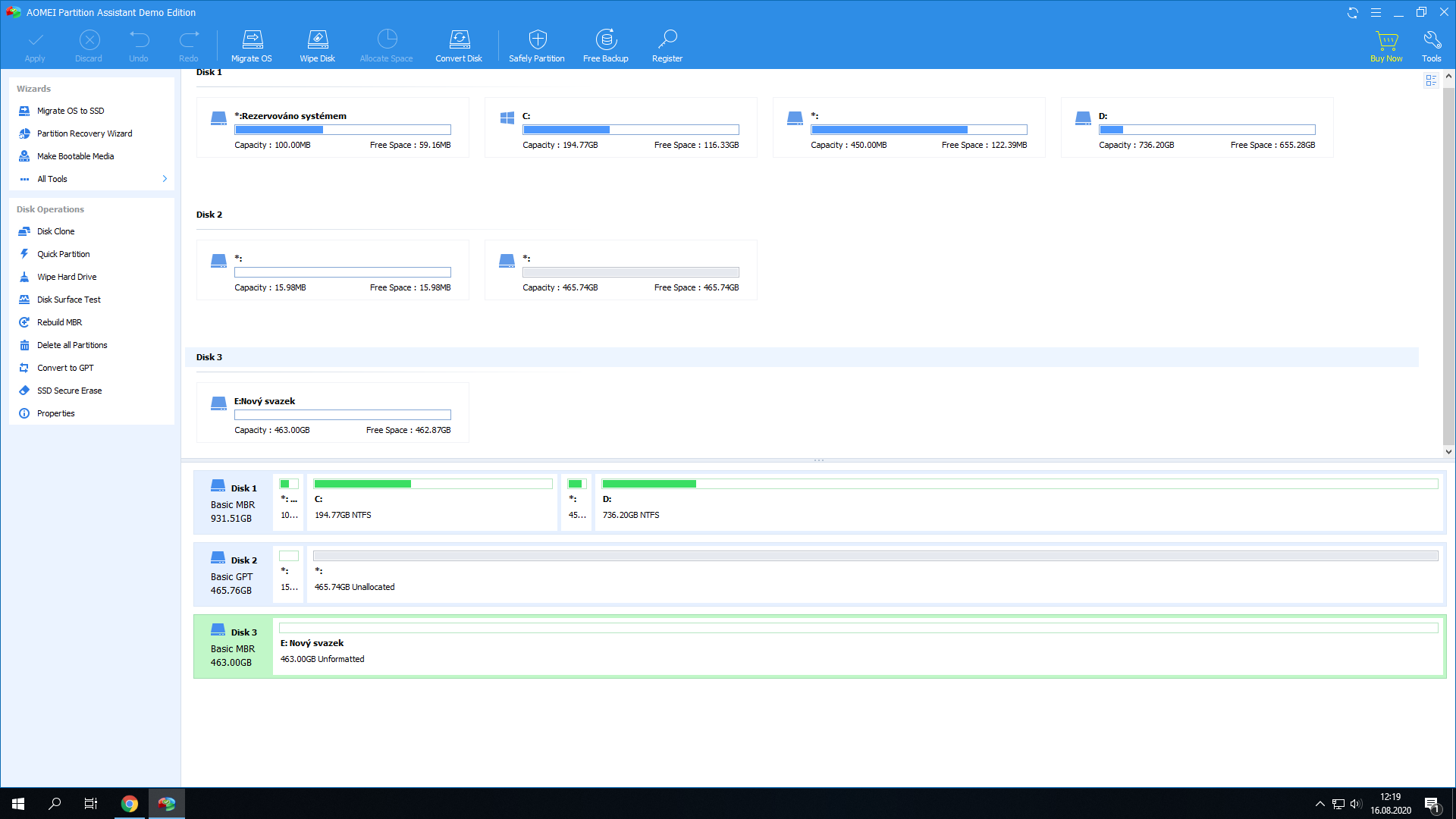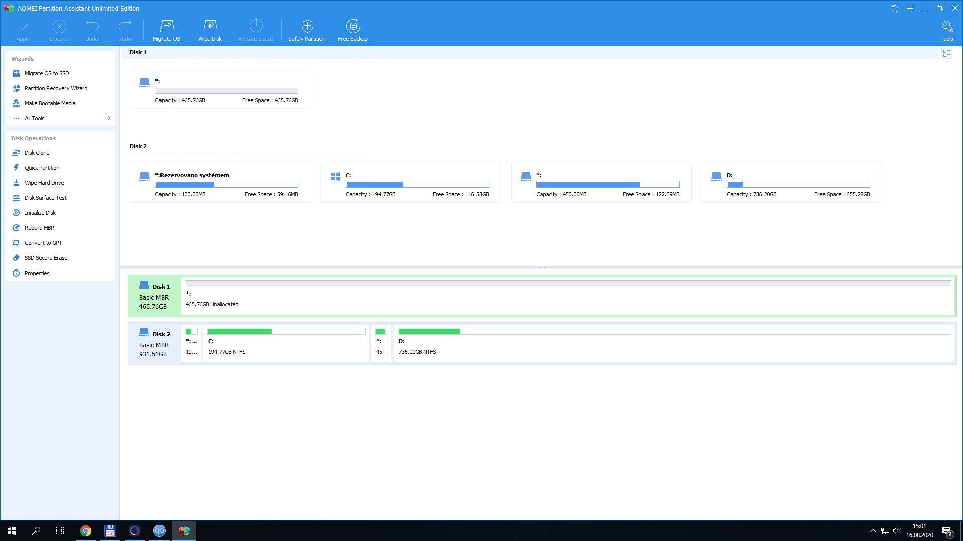 Jen nechápu proč to zobrazuje i Disk 3 když fyzicky mám jen 2 disky. Pokud se tímhle programem dá clonovat starý hdd na SSD tak by byl problém vyřešen.