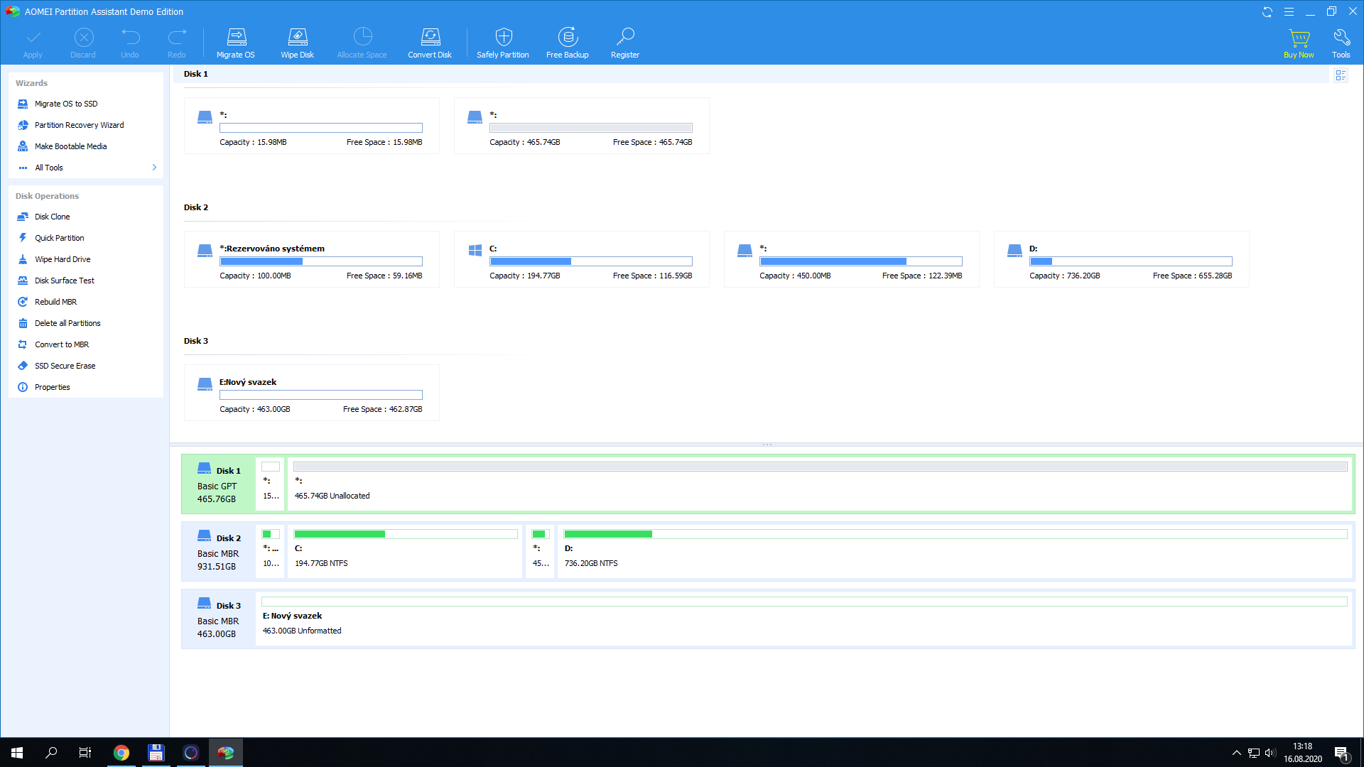 Nainštaluj si AOMEI Partition Assistant Standard free https://www.diskpart.com/download.htmla daj screen aj v tom programe.