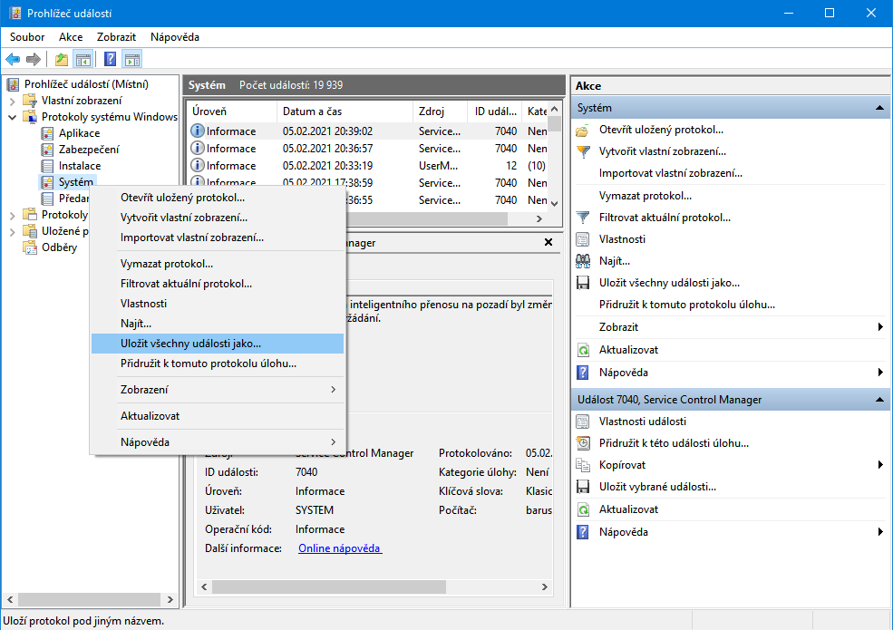 Informace 05.02.2021 15:26:29 SecurityCenter 1 Není Služba Centrum zabezpečení Windows byla spuštěna.