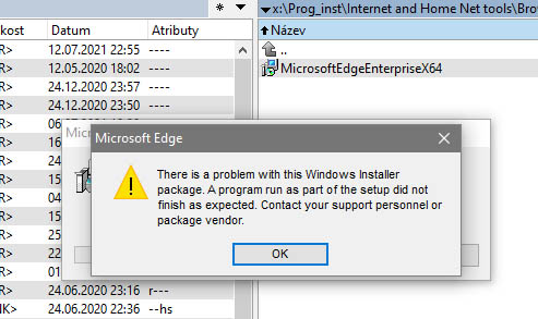 Stejně tato věc vypadá na MSEdge. Vím, že win10 ho má zadrátovaného hluboko a já jsem to nastavení pošahal tím uninstallem. Zkusil jsem před areaderem novou instalaci tohoto hegemona a ta nejde dokončit. Viz screen, jestli to někoho zajímá.