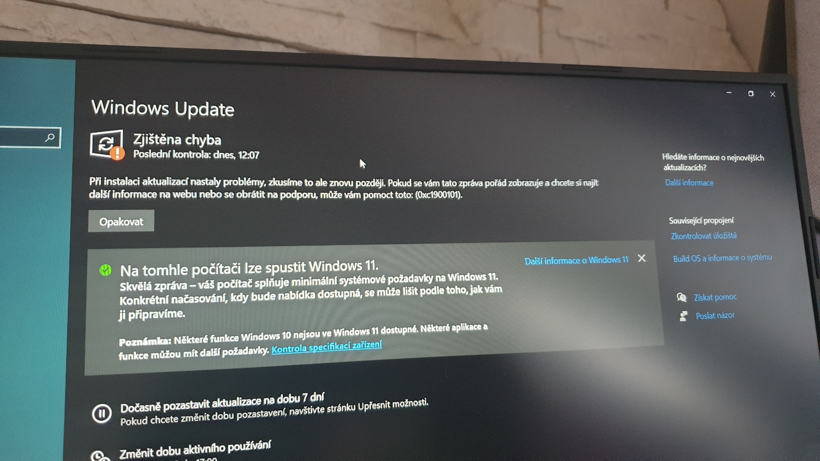 Zdravím, naběhla mi ve Windows update aktualizace na Windows 11. Aktualizace se stáhne a začne instalovat a na 88 procentech skočí chyba "0xc1900101".Netusil by někdo co by to mohlo dělat? Děkuji
